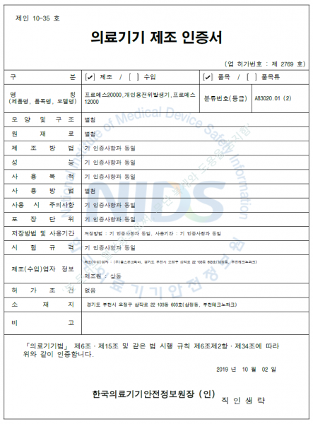 의료기기 제조업 허가증 2017